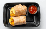 Scrambled Eggs + Cheddar Cheese + Turkey Sausage + Salsa + Gluten Free Wrap