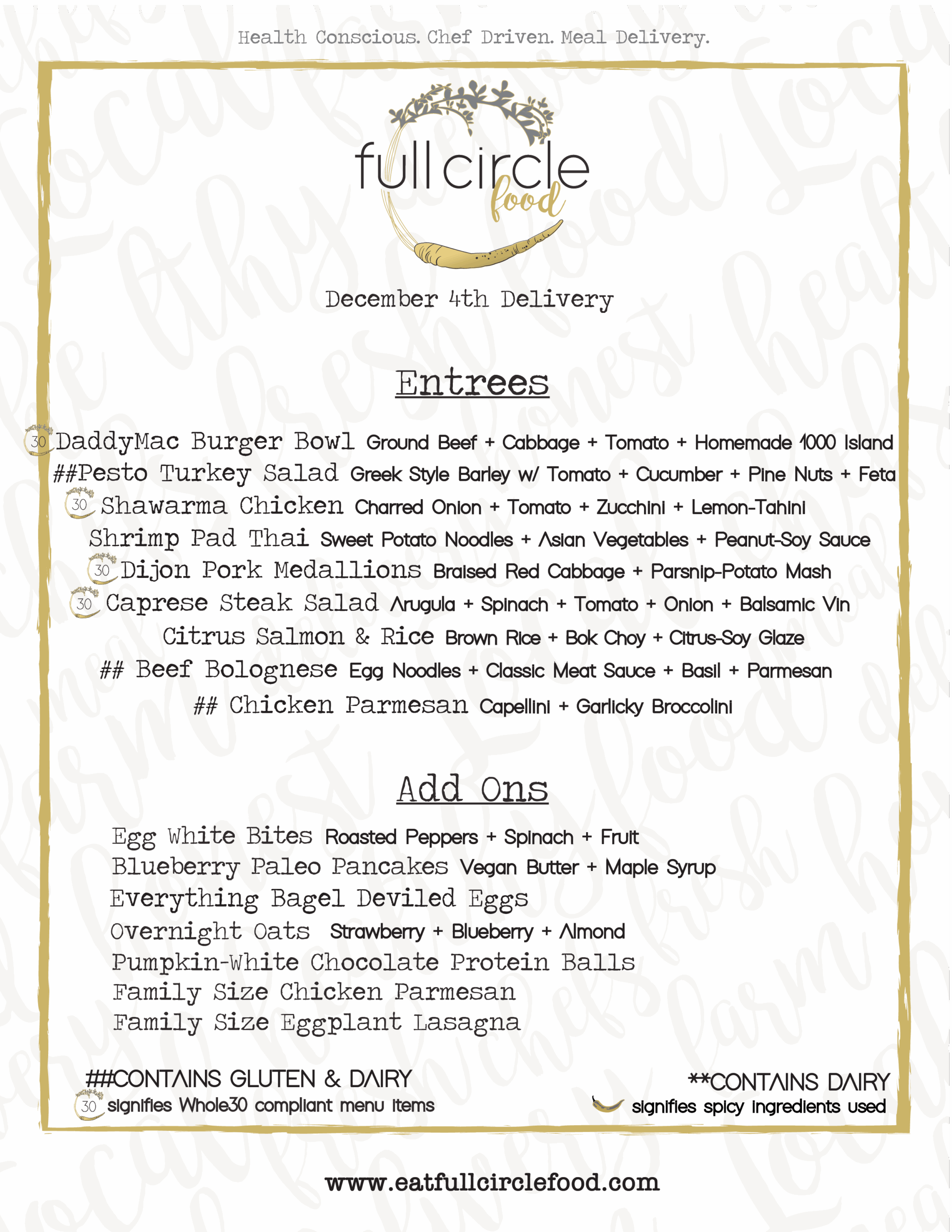 Please note: Your meal plan will automatically renew every Thursday at midnight unless you change the delivery date or cancel the meal plan inside of your customer portal.